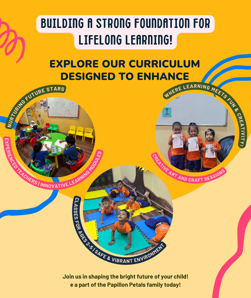 We believe that early childhood is the foundation for future success. At Papillon Petals Preschool, we create a nurturing and stimulating environment where children can explore, learn, and grow through creative activities and engaging lessons. Our approach focuses on developing the cognitive, emotional, and social skills needed for a well-rounded start to life.